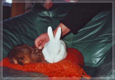eine lange Freundschaft zwischen Meerschwein und Hase, beide sind schon im