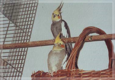 ein Nympfensittich(ehe)paar welches kleine Streitigkeiten am Anfang hatte,